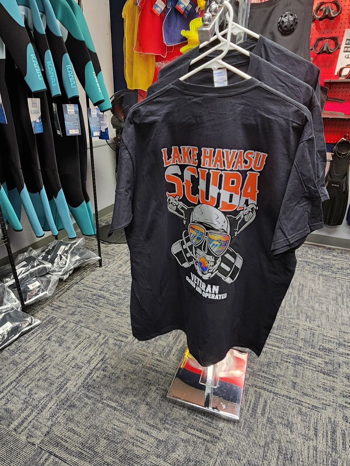Show your support for your favorite local dive shop. Come get these high quality Lake Havasu Scuba shirts. $25 s-xl ($30xxl-xxxxl available soon)